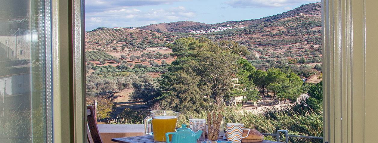 The beautiful terrace has stunning views of the Messara valley and the surrounding mountains.